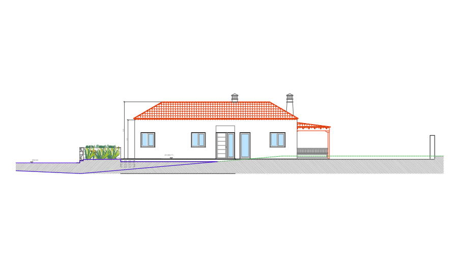 Beinhaltet einen Grundentwurf für ein Wohnhaus.